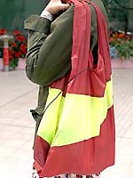薄いピンク地に蛍光グリーンの掛け合わせの「The New Shoppingbag」を持っていたホットヨガのインストラクターの女性(31歳)は、ヨガバッグをずっと探していたがなかなか気に入ったものが見つからず、先日ソニープラザで見つけて一目惚れしたのだそうだ。「広げるとかなりの大きいんですが、肩に掛けるとくたっとして身体に馴染むので気に入ってます」。