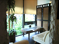 店内は、地中海風の白を基調にしたヨーロッパとアジアンが程よくミックスした無国籍な雰囲気。オープン当初は、ヨーロッパのリゾートをコンセプトにしていたが、様々なお客さまに来て頂けるよう、お客さま目線で変えていった結果、現在のオリエンタルな無国籍風の内装になったという。約30坪で約46席の店内は、街並みを見下ろす窓辺のソファー席、一段高くなっている小上がり席、テーブル席、カウンター席など、様々なシュチュエーションが楽しめるようになっている。内装は高城さん自身がデザイン。店の運営資金を確保するため、初期費用を押さえる事に注力した。壁の塗装は低コストのデザインを施工業者に提案。その他、家具などもネットオークションで購入したのだそうだ。ちなみに、小上がり席の下は床下収納になっているなど、空間の完成度も兼ねた実用的な作りも忘れていない。