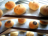 商品は、食パンやフランスパンなどのプレーンなパンが約30種類、菓子パンが13種類ほどで構成。すべて国産小麦と天然酵母を使い、卵、油は不使用。小麦は、輸入物の1.5〜2倍のコストがかかる岩手産の南部小麦、リンゴは山形県・くらたさんの無農薬のもの、というように、材料もすべて国産の無農薬・無添加で、生産者の顔がわかるものを仕入れている。餡やジャム、カレーなどのフィリングも自家製で、カレーのスパイスも、福岡から無添加のものを取り寄せて調合するというこだわりようだ。