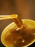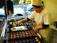 白を基調とした店内は約10坪。格子や御簾などを多用した純和風の雰囲気だ。1号店は、東大阪市のたこ焼き専門店「匠屋」。生地に7種の隠しだしを使ったこだわりのたこ焼きである。メニューは「特製ソース」「特製しょう油」(6個入 530円、8個入 650円)を中心に、たこ焼きをえびせんべいではさんだ「たこせん」(350円)や「柚子はちみつ」「梅はちみつ」(350円)など。東京では馴染みが薄い珍しいメニューを展開している。