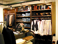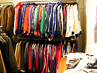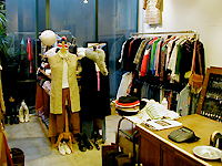 06年8月25日にオープンした店内に一歩はいると、まず目に飛び込んでくるのは奥の大きなシューズシェルフ。縦と横の壁一面を全て使ったこのシェルフには、メンズとレディスの革靴がずらりと並ぶ。すぐ正面には、商品を見ながらゆったり座れるビンテージソファー。内装のイメージはここから始まったと言う通り、店内の什器や小物は、イギリスのアンティークにこだわってセレクトされており、“雑多なジャンク品”にイメージされる従来の古着屋とは異なる。内装はアディッション・アデライデも手掛けたインテリアデザイナーと共同で作り込んでいったという。ヨーロッパの街角でよく見かけるブティックのような雰囲気だ。