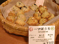 メニューは、肉は使用せず、野菜や乾物類メインの日替わりデリが8種。TOFUマヨネーズの芋サラダ、磯あらめの煮物、味噌ラタトゥイュ、青大豆麺の落花生和えなど、他ではお目にかかれない珍しいメニューが並ぶ。値段は100グラム350円〜450円。デリの他にも、同店でフィンガーフードと呼ぶ、玄米のおむすびやいなり寿司、おかずパイなども販売。クッキーやせんべい、生菓子なども多数揃えられており、なかでも砂糖不使用の味醂プリン(夏季限定)や、洋風饅頭の一寸ぼうろは人気だそうだ。また店で使用している乾物や調味料なども販売。ランチメニューは、玄米に惣菜三品と漬物がつく「Cafe弁当」、お麩をカツに見立てた「麩レカツ丼」「ミックスビーンズカレー」など日替わりで3〜4種、いずれも800円だ。