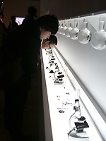 さらに、運営業務を担当するパルコ宣伝局・江本多栄子さんに、今回のエキシビションの特徴や見どころを伺った。「清川さんの魅力は、糸や布、ビーズなど手作りの温かみを感じさせる素材を使って、繊細かつ華麗な独自の世界を創り上げるところ。『美女採集』は、美しさと才能を開花させて活躍している美女たちを揃え、彼女たちの普段とは違う新たな表情、魅力を引き出しているところが最大の見どころです。平面では分からない衣装の繊細さや美しさ。顕微鏡の中に閉じ込められた製作過程、美女たちのリラックスした表情−。また、ギャラリー正面のガラス面から覗き見ることができる、美女22名の写真もご覧ください」(江本さん)。