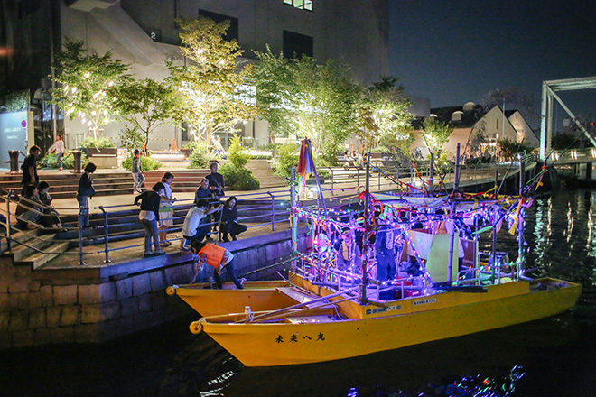 下:未来美術家の遠藤一郎さんが2013年からてがけてきた『未来へ丸』がついに完成。東京湾の運河をパレードした。