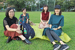 下:すぐ近くの防災公園も解放されており、芝生に寝転がってくつろぐ人々がたくさん。