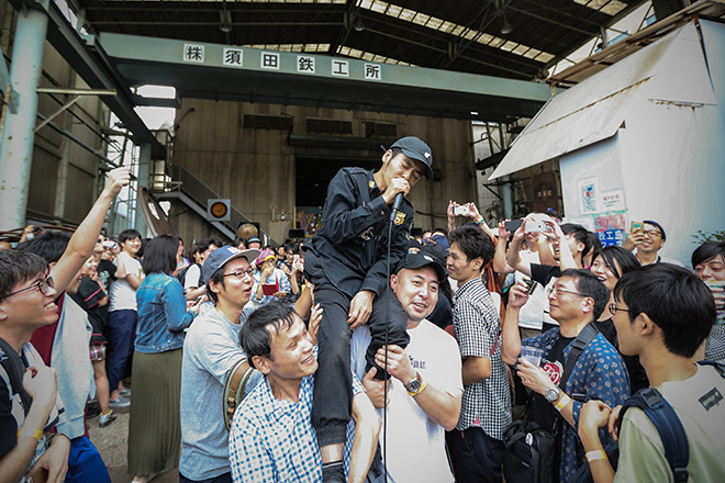 「音も火も自由に出せる環境では、アーティストが都内でできないことができるし、実際にスタジをオープンしてみると制作だけでなく、ライブや撮影など、この場ならではの可能性があって。改めて場所の可能性を広げるきっかけとして、フェスができたらと思うようになりました」(BUCKLE KÔBÔ、鉄工島フェス実行委員会事務局長/伊藤悠さん)。