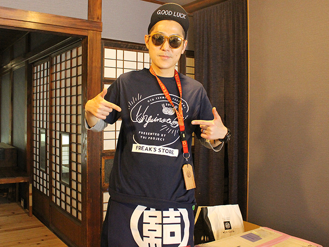 「結いプロジェクト」の野口純一さん。着用したTシャツは、「結いのおと」×FREAK'S STOREのコラボ商品。