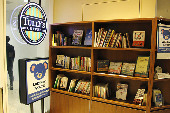なにかと話題の築地駅から歩いてすぐの場所にある聖路加国際大学の施設内、表通りに面したタリーズコーヒーの店舗奥に、ブルーの小熊の看板を掲示した小さな図書館のような明るい空間があるのに気づく。地域に開かれた健康情報サービス「聖路加健康ナビスポット:るかなび」と名づけられた、聖路加国際大学研究センターの学術関連施設である。先日友人が、健康診断を受けた際このスポットの存在を知り、今回の取材となった。