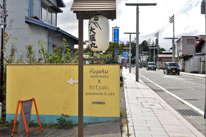 その後は、富士山に向かって御師街の大通りを進むと、今回宿泊した施設「御師のいえ“大鴈丸“ fugaku wood works x hitsuki guesthouse & cafe」がある。