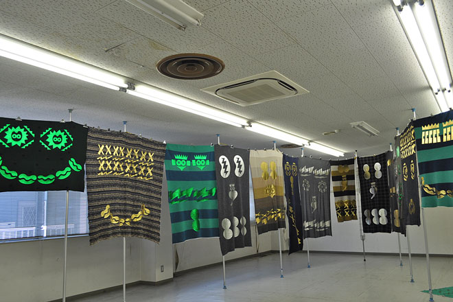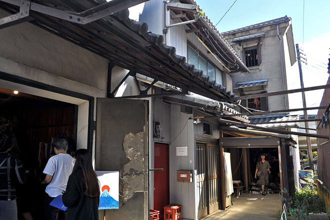 「吉田の蔵ブラザーズ」は築70年を超える古家で、当時の山梨中央銀行の吉田支店長が銀行の裏に社宅として建てた物件だ。家の両側には2階建てと3階建ての蔵があり、絹糸や織物を保管していたという。現在は舞踊家の中西晶大さんとグラフィックデザイナーの杉原悠太さん(スリランカテキスタイルプロジェクト主催)がアトリエとして使用している。今回は「ハタオリ大学展」の会場として、「フジヤマテキスタイルプロジェクト」の10年分の作品展示を行った。