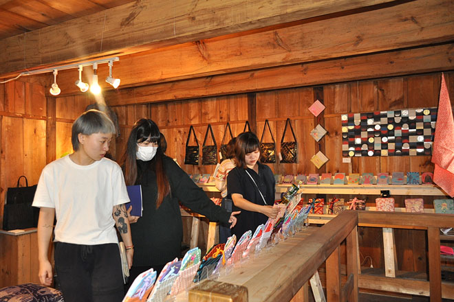 「フコク生命・空き家」では、gochisou(ゴチソウ)や炭酸デザイン室などの東京造形大出身のテキスタイルブランドが集結。studioカランの陶器雑貨やcafe citron(カフェシトロン)などのフード屋台も出店していた。「ハタオリ大学展」の関連イベントとして開催された、東京造形大教授でテキスタイルデザイナーの鈴木マサルさんや地元のハタヤらが登壇したトークショー「ハタオリ大学展トーク」や、コンペティション「ハタオリ大学賞」の授与式もこちらで行われた。