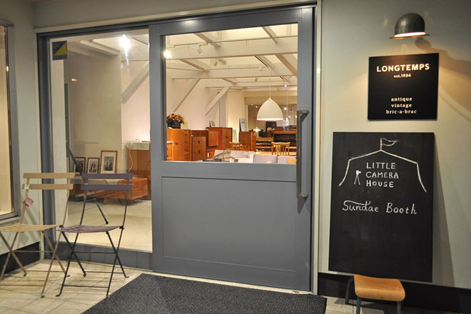 続いては、雑貨と家具の店「LONGTEMPS(ロンタン)」。アンティーク家具を背景に、写真家 志鎌康平さんに撮影してもらえる「サンデーブースのカメラ小屋@ハタフェス」と、7 日限定で布作家 石川ゆみさんとつくるTENJIN-factoryのリネンを使用した巾着ワークショップが行われた。