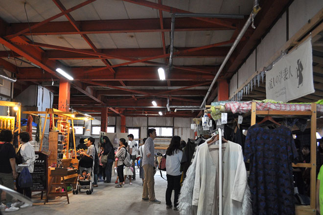 続いて、もう1つのメイン会場である「中村会館」へ。こちらでは、野外のスペースに古道具、古着、雑貨、作家作品などが並ぶ。