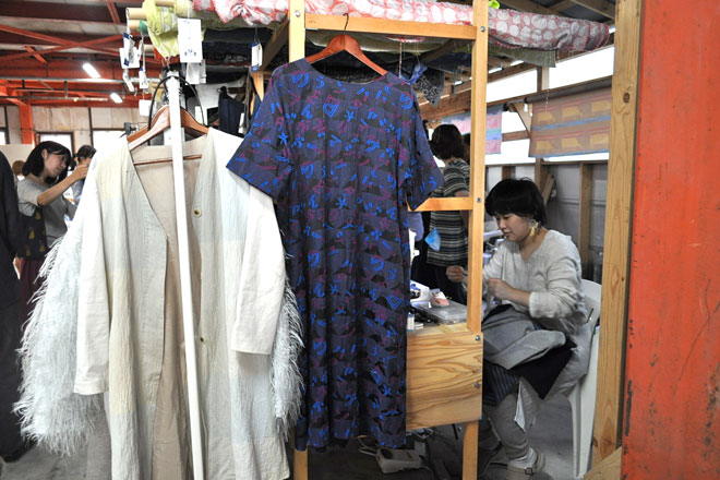 ③ そして今年1番の見所は、地域の工場と東京造形大学がコラボしたフジヤマテキスタイルプロジェクトの10周年展「ハタオリ大学展」。このプロジェクトを経て独立したデザイナーたちをゲストに迎えたトークショーに表彰式、コラボ開発したファクトリーブランド商品の販売、卒業生によるテキスタイルブランドのマーケットが行われた。