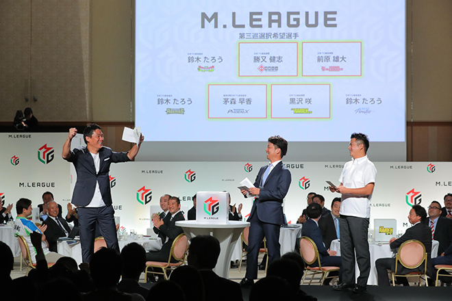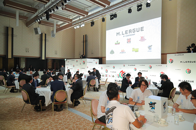 2018年10月のリーグ開幕に先駆け、8月7日にはMリーグに所属するプロ雀士を決める「ドラフト会議」がグランドプリンスホテル高輪を会場に実施された。7チームがそれぞれ3名ずつの指名で計21名、1巡目から指名していき、指名が重複した場合はくじ引きと、プロ野球のドラフト会議と同じシステムだ。