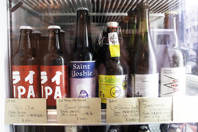 代表的な取り扱いブランドは、オーストラリア発ビオディナミ農法のオーガニックワイン「ロズネー」、伝統のオーガニック・ハンドクラフト製法で作るメスカル「アモーレス」(様々なアーティストが手がけるインパクトのあるラベルが楽しい<ベルデ モメント> が人気)、女性3人組の高品質メスカルメーカー「マリアフェリス」、メキシコチワワ州のソトル(蒸留酒)「コヨーテ」など。価格帯は1本3000円代~2万円程度で、多くは量り売りも可能だ。クラフトビールは日本の「ヨロッコビール」やスウェーデン「ブリュースキー」ほか60種以上。客単価は平均3,000-4,000円程度。