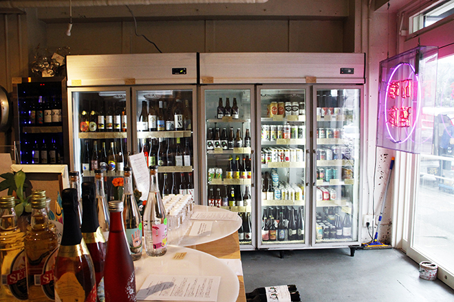 店は入り口を入ってすぐが酒店、その奥が角打ち/バー、さらに奥がソファもありくつろげるラウンジとなっている。