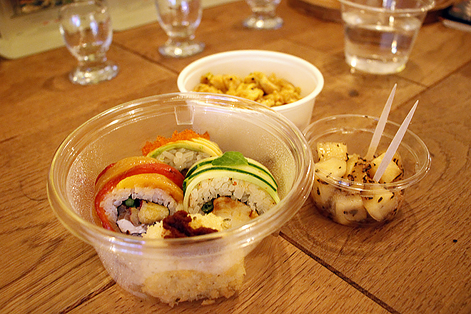 デリは店内での飲食も可能。メキシコの手巻き寿司「makis(マキス)」はカラフルな彩りと食材の組み合わせが楽しい