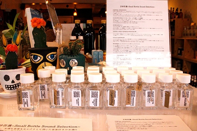 万珍百選 ~Small Bottle Sound Selection~はお酒(50ml)と音楽(QRコード付き)を同店なじみの人気DJらがセレクトしてパッケージ化した商品。セレクターにはMOODMAN、COMPUMA、L?K?O?などが名を連ねる。