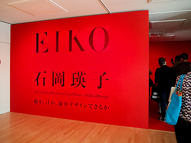 本展は2フロアにまたがり、「TIMELESS:時代をデザインする」「FEARLESS:出会いをデザインする」「BORDERLESS:未知をデザインする」の3章構成。タイトルの「血が、汗が、涙がデザインできるか」は、2003年に石岡が日本で行った講演に由来する。導入部の壁面は、その一節が掲げられ、会場デザインには“勝負色”である赤が効果的に使われている。