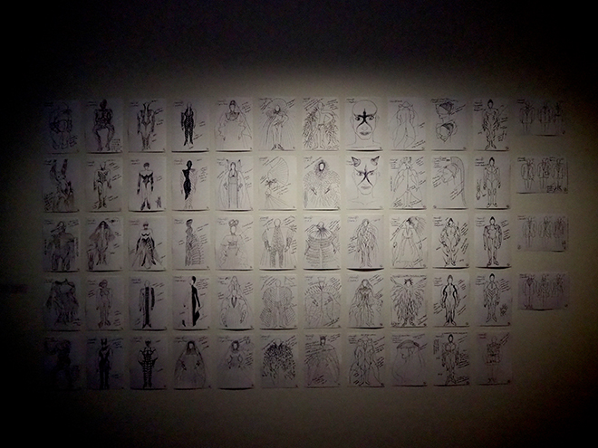映画「ザ・セル」の衣装ためのアイデアスケッチ(撮影:永田晶子)