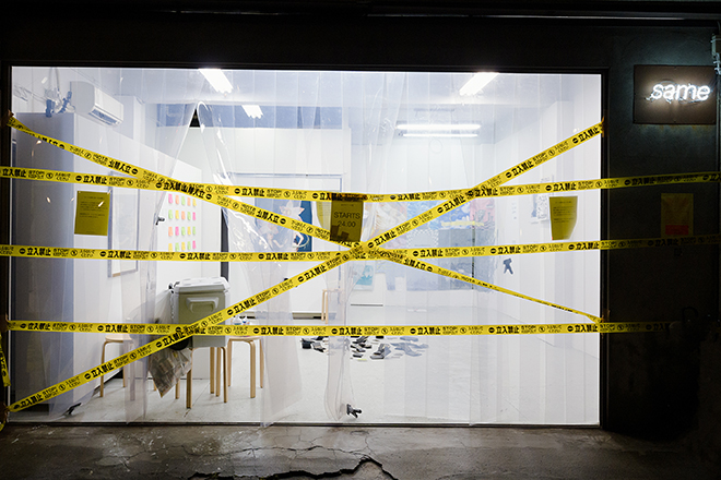 「same gallery」をオープンしたのは、長谷川さんがWiden+Kennedy時代に知り合った写真家の嶌村吉祥丸さんと、仕事場兼ギャラリーにできるような場所を一緒に借りたいねと話していたのがきっかけだったそうだ。2019年の末に物件が決まり、改装作業を経て2020年3月7日にオープン。そのオープニングイベントは、初日限りの「bring your own art party」。来場者が各自所持しているアート作品を会場に持っていき、壁に飾り、その作品についてほかの来場者と話をするという、これまた非常にユニークな企画で、延べ100名ほどが来場した。