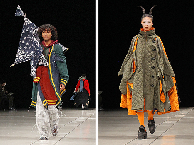 生まれ育った北区荒川の河川敷での前回のコレクションで、ブランドをスタートした当時の精神へと原点回帰したという吉田さん。今回はスクールルックという自身のファッション的な原点を、現在の視点でどう表現するかチャレンジしたコレクションだったのかもしれない。