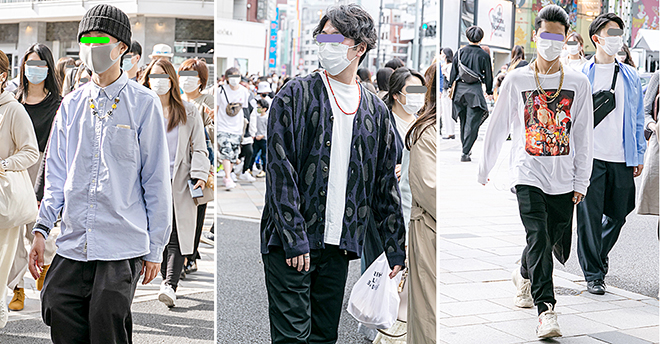 「このネックレスは井上大和くんが買っていたので欲しくなりました」と言うのは、高校3年生の男性(17)。シルバーやパールなどのモード感あるものに加え、ビーズやトイっぽいパーツを繋げたものも案外多い。いま秋冬はそういうクラフト感ある、ヒッピーっぽいテイストがトレンドになりそう。