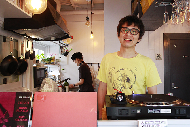 カウンターにはレコードプレイヤーとレコードが設置されており、音楽好きの桜井さんの選曲と共にノンアルコールが楽しめる。