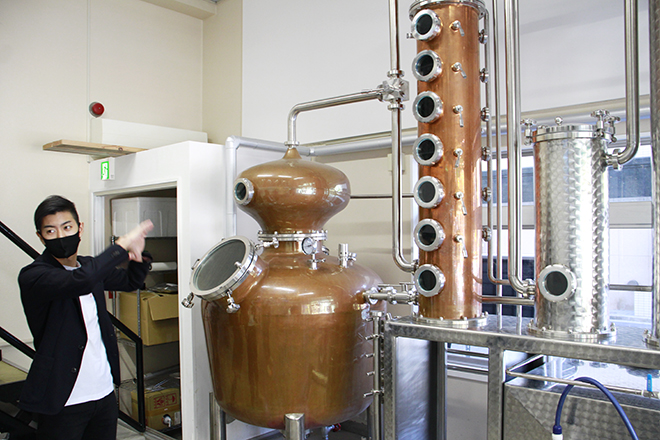 1階奥にあるハイブリッド型蒸溜機。1日で数百本のジンを生産することができるという。
