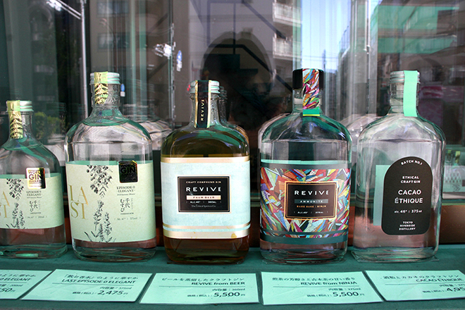 1階のショップでは同社が販売している全てのジンが購入可能。ボトルやラベルまでも個性が際立つジンは、ギフトにも向いている。