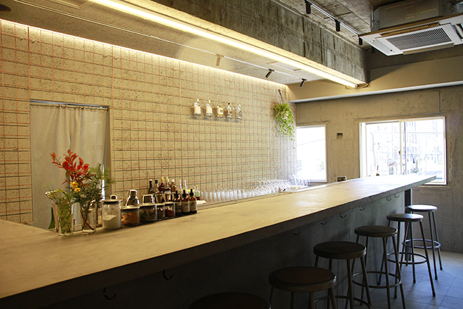 バーでは簡単なおつまみの他に「ジンのための一品料理」を提供。ラム焼売、発酵トマトソースを使ったえびチリ、フィレンツェの郷土料理をアレンジしたランプレドットバーガーなど、趣向を凝らした料理が楽しめる。カウンター10席に、4人用の半個室もあり。