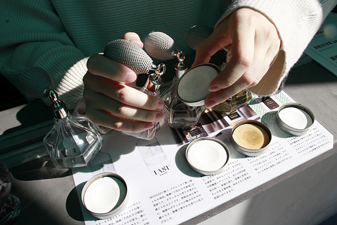 香水のようにジンのアロマを楽しむ、という斬新なプレゼンテーションがおもしろい。蔵前散策のお供にと、テイクアウトでジントニックの販売もしている。