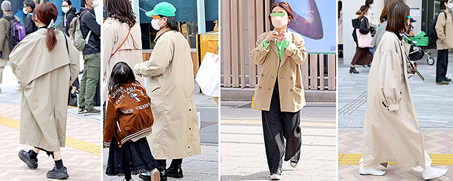 ・女性のベージュ系アウターの多くがロング丈コートで、「新東京人」が多いからか、若干トレンドが戻ったような印象を受けた。
