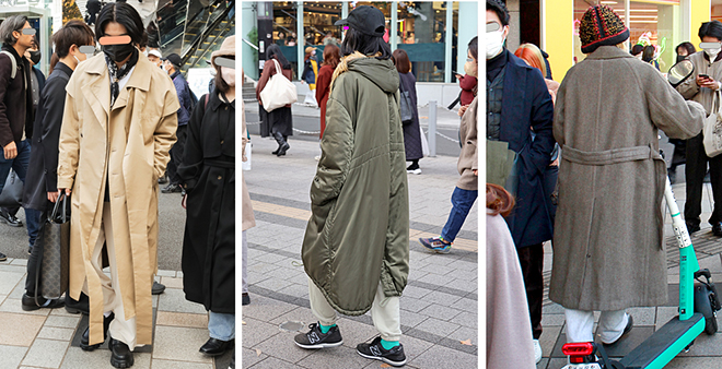 先述したように、実は白いアウターの男性も多いことが確認された実査当日。ズームアップアイテムとしてフィーチャーした「ロングコート」も白が少なくありませんでした。インタビューをすると、