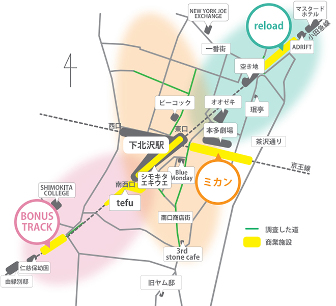期間は2023年4月7日の土曜日を含む、3日間(+プレサーヴェイ1日)。下北沢駅周辺~世田谷代田駅~東北沢駅方面、南口商店街や北側の一番街商店街など街を回遊しながら20組/計28名にインタビューを行った。