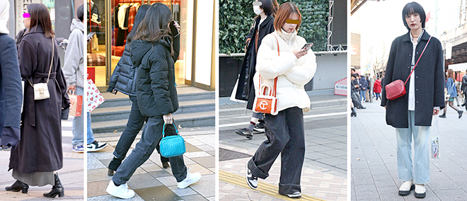 いつもの通り、担当編集部員でプレサーベイを行った結果、第513回めは「パデッドアウター」、「レザータッチ(調)アウター」、「レザータッチ(調)スクエアバッグ」の3つにフォーカスし、カメラマンや学生スタッフら合計23名で、観察・スナップ・インタビューを行いました。(文責:高野公三子)