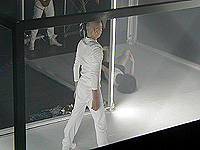 ツルンとした白いギャルクマがぴょこぴょこと飛び跳ねるシーンがあったかと思えば、歩くたびにスイッチがオンになる電飾付きのスニーカーで歩きまわるシーンがあったり、写真日記のようなシーンがあったり。手足をもぎ取られたような不格好な人間が、ひたすらぶつかりそうになりながら行進するなど、ハイテク装置に囲まれる中でのローテクな肉体とのインスタレーションといった印象を受ける、ダンスパフォーマンスだ。
