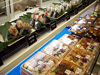 コムサ・ブランドらしく黒が基調の店内には、十穀米や鮭ごはんなどの米飯類、煮物や焼魚などの主菜類、サラダ類、デザート類のパックがオシャレに並んでいる。奥には、寿司、おにぎり、ベーグル、鯛やき、デザートなど、品目もかなりの数に及ぶ。人気メニューは、オムライスとパスタ、サラダがセットになった「オムライス丼」(580円)や、黒い紙製のプレートに自分の好きな惣菜をセットできる「ユニット膳」(650円、700円、1,000円の3種類)だそうだ。