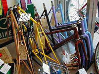 約10坪の店内には、アメリカ・ワークスマン社のピザデリバリー用自転車、イギリス・パーシュレイ社のロイヤルメイル(郵政省)用自転車やパン屋・花屋の配達用自転車など、見たこともない珍しい自転車が所狭しと並んでいる。