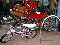 また同店では、オリジナル自転車「コレクション・ガールズコースター」も販売。ペダルを逆回転させるとブレーキがかかるコースターブレーキを使用し、フレームは高度な溶接方法を用いて作られているこだわりの商品である。フレーム8色、ハンドル7種類、グリップ6種類、サドル6種類のオリジナルパーツの中から各1種類を選んで一台を構成するセミオーダーメイド方式。同社の創業間もない頃から20年以上生産し続けているだけあって、親子2代で愛用する人もいるという人気商品だ。
