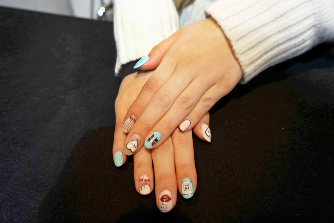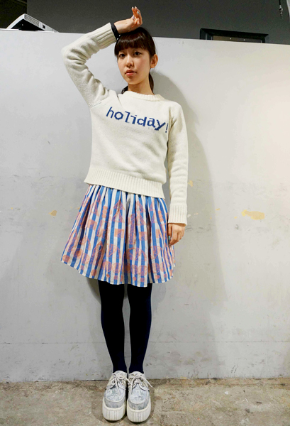まわりの方からは、「ナチュラルポップ」というキーワードで私のファッションを見ていただいています。「I am I」のスカートを中心に、昨日ラフォーレのセールで購入したニットを早速着てみました。ネイルは、中山ちえこさんというネイリストの方にいつもやっていただいています。
