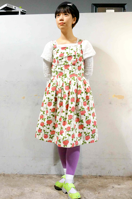 基本的に原宿、下北沢、高円寺、吉祥寺で購入しますね。古着と新しいもの、半分ずつくらいの頻度かな。ブランドだとJANEPMAPLE(ジェーンマープル)というブランドが好きですね。また、高円寺の「光」というショップでもスタッフとして店頭に立っています。このお店は、すごくファンシーなんだけど、柄に漢字のデザインがあしらわれたものなどもあって、かなり独特な雰囲気。可能な限りお店には立ち続けたいと思っています。