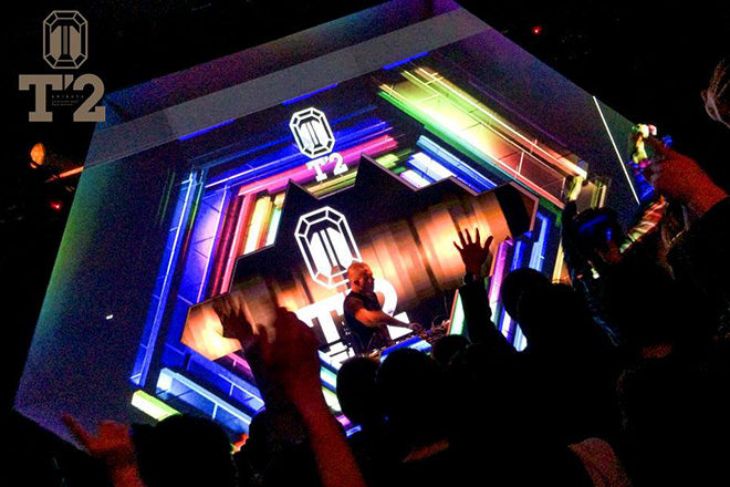 2014年2月28日に渋谷センター街の「ちとせ会館」の地下にオープンした「T2 SHIBUYA(ティーツー シブヤ)」。広大な空間にラウンジやバーカウンター、DJブース、VIP席を有した大型複合エンターテイメントスペースだ。特徴は、日本最大級の広さとキャパシティ。もともと飲食店だったという店内は、総面積250坪。天井高は5mもあり、広々とした空間になっている。
