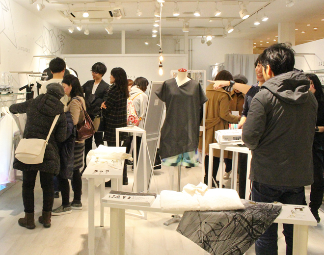 Etw.Vonneguet(エトヴァス・ボネゲ)の直営店が、渋谷PARCOパート1の3Fに3月5日(土)にオープンした。今回のコンセプトは、“LAB”。3月12日に行われたレセプションパーティーでは、「FASHION TECHNOLOGY LAB(以下、略称FTL) 」の技術を用いた作品を多数披露し、来店客の視線を集めていた。